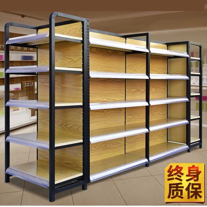 新疆乌鲁木齐四柱木纹超市货架便利店商品柜母婴店文具店饰品货架热门设计联盟服务商